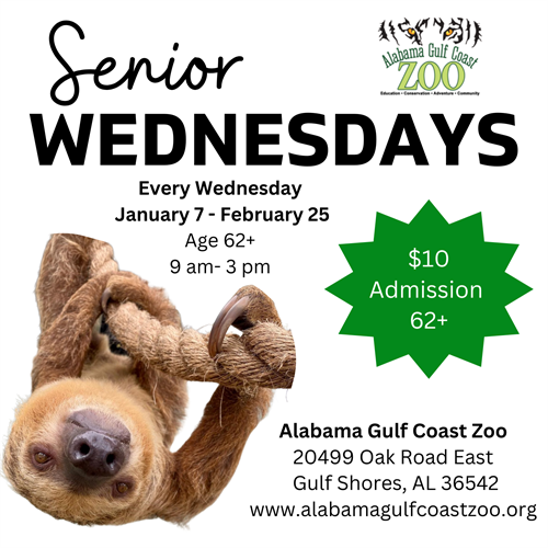 Every Wednesday from January 7 through February 25, 2026, Senior Adults age 62+ can enjoy regular zoo admission for just $10.
