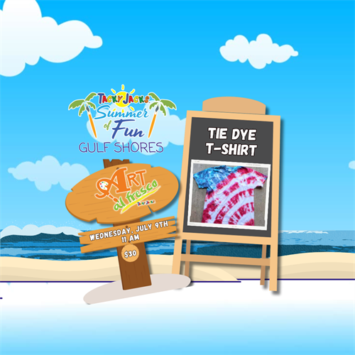 Learn how to create your own art project at Tacky Jack's Gulf Shores for "Art al Fresco", July 9, at 11 am. create your custom DIY Tie Dye T-Shirt. All ages are welcome. Please select your T-Shirt size when placing your order online. SHIRT SIZES ARE VERY LIMITED AT THIS TIME. Please indicate Adult or Youth.